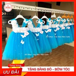 Đầm công chúa cho bé gái xanh trời hoa xù