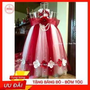 Váy tutu đỏ nơ hoa dải cho bé gái 0 đến 6 tuổi