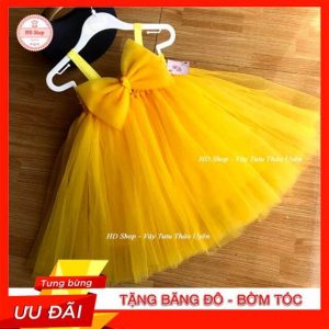 Váy công chúa vàng nơ chéo cho bé gái