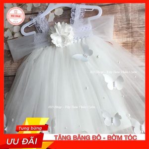 Váy cánh tiên mầu kem đính nơ cho bé gái